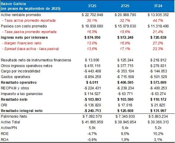 Pérdida integral neta Galicia: -$228.080 millones (incluye deterioro de títulos públicos por -$136.820 millones en «otros resultados integrales»).