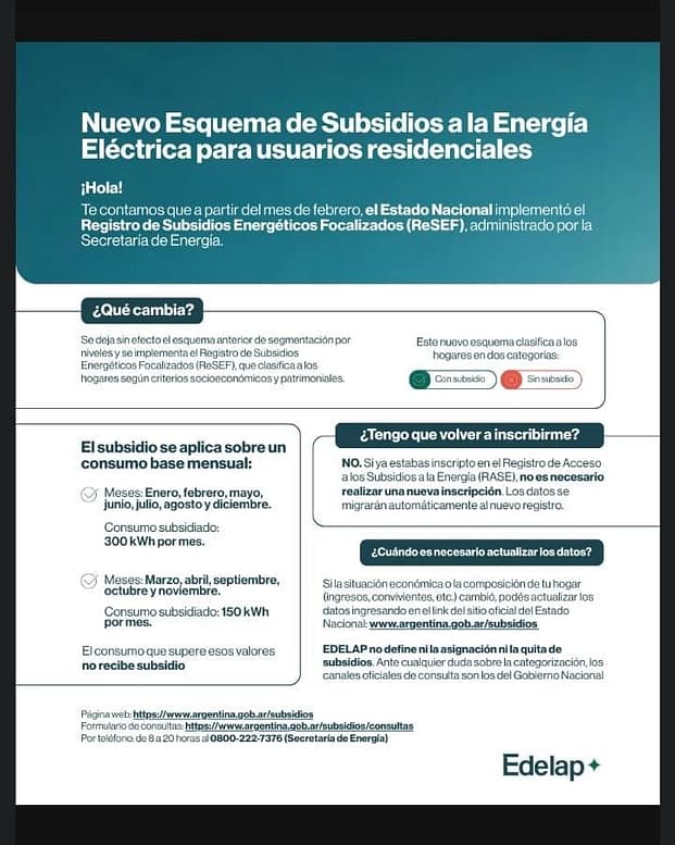 Desde enero de 2026, el esquema de asistencia en las facturas de luz y gas cambió por completo en la Argentina. El nuevo programa de Subsidios Energéticos Focalizados (SEF) ya está vigente, aunque el Gobierno nacional lo implementa en etapas que generan confusión entre los usuarios. En la última semana, empresas distribuidoras como Edelap comenzaron a enviar correos electrónicos notificando a sus clientes sobre la nueva división de usuarios y la necesidad de regularizar su situación en la base de datos centralizada.