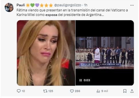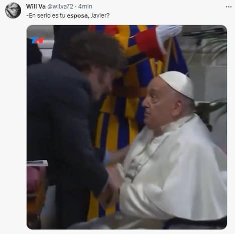 Milei con el Papa: la transmisión presentó a Karina como «su esposa» y explotaron los memes